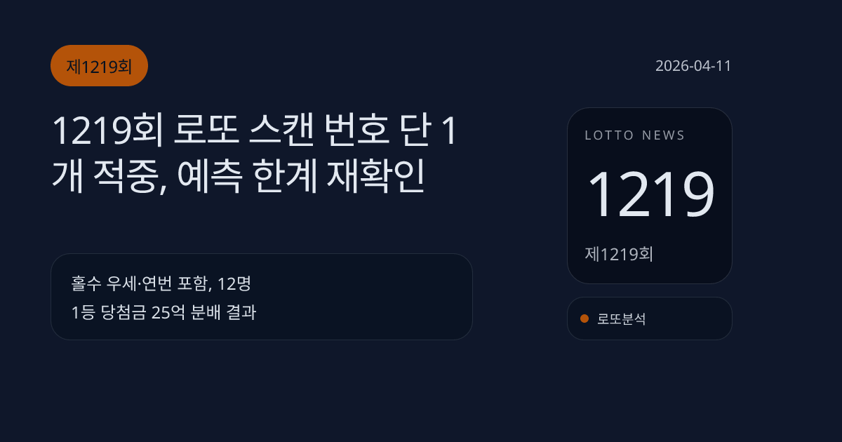1219회 로또 스캔 번호 단 1개 적중, 예측 한계 재확인